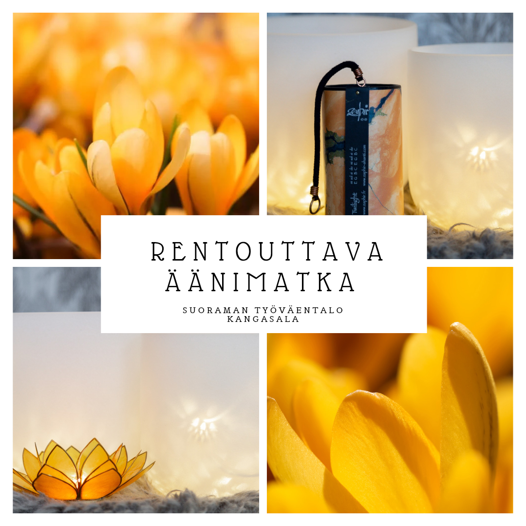 Lämpimästi tervetuloa rentouttavalle äänimatkalle tunnelmalliselle Suoraman työväentalolle Kangasalle ke 1.4.26 klo. 18.00-19.30. Ihanan lempeä ilta viltin alla sointuja kuunnellen.